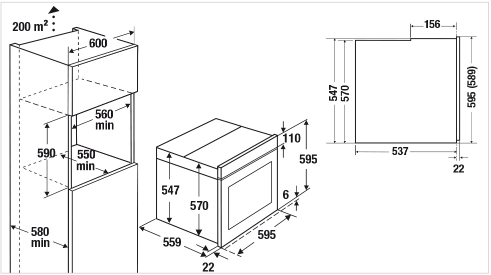 - Nischenmaße B x H x T ca. 560 x 450 x 550 mm