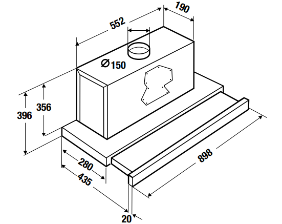 - Ausziehbares Flachpaneel zur Vergrößerung der Wrasenaufnahmefläche