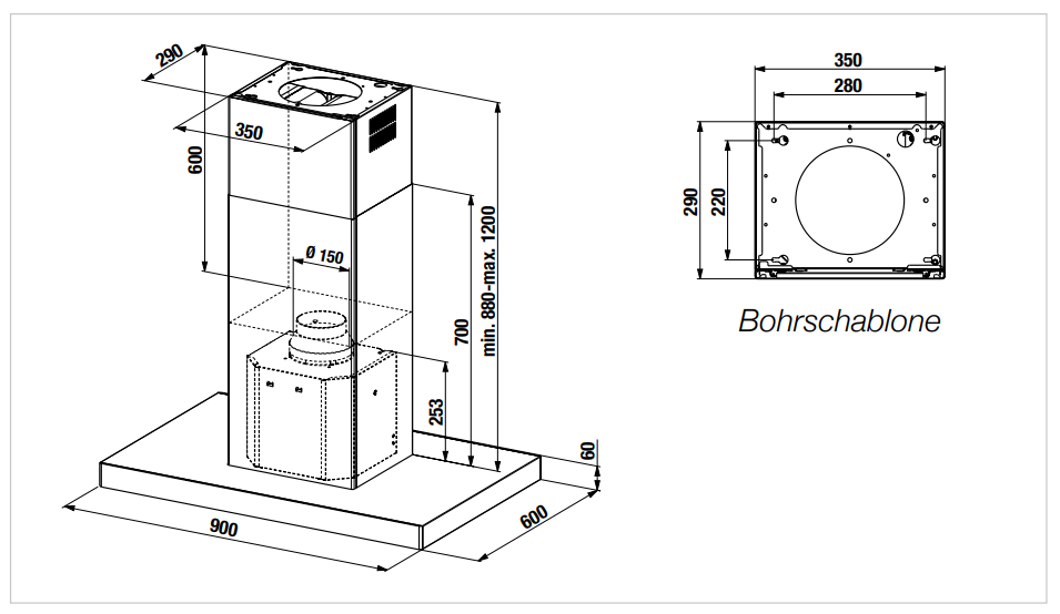 Inselhaube, Breite 90 cm