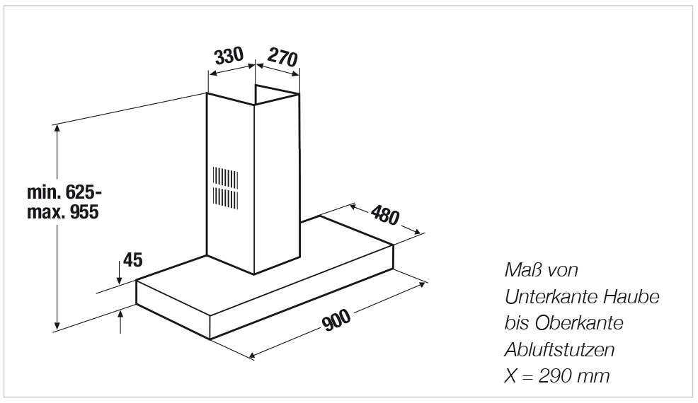 Gerätemaße Abluft (HxBxT): 635-965 x 900 x 500 mm