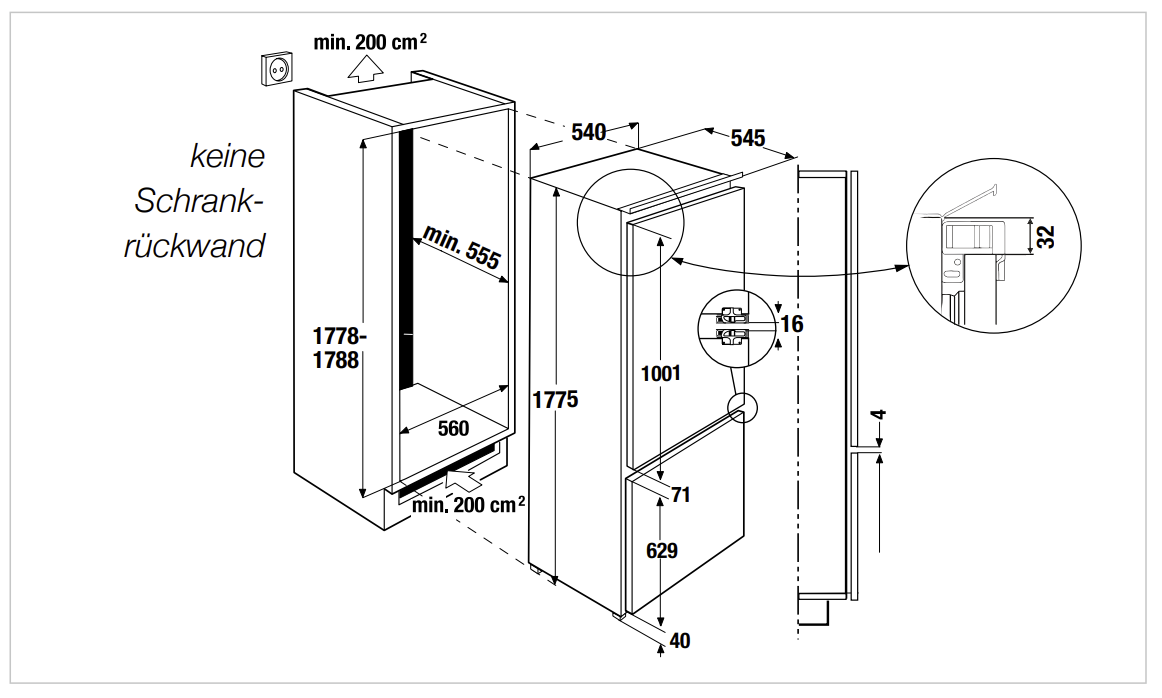 - Ausschnittmaße B x H x T ca. ca. 560 x 1.788 x 555 mm