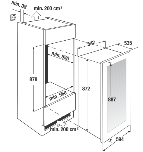 - Gerätemaße (exkl. Griff) B x H x T ca. 594 x 887 x 555 mm