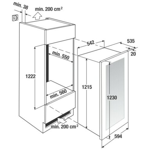 B x H x T ca. 594 x 1230 x 555 mm - Nischenmaße