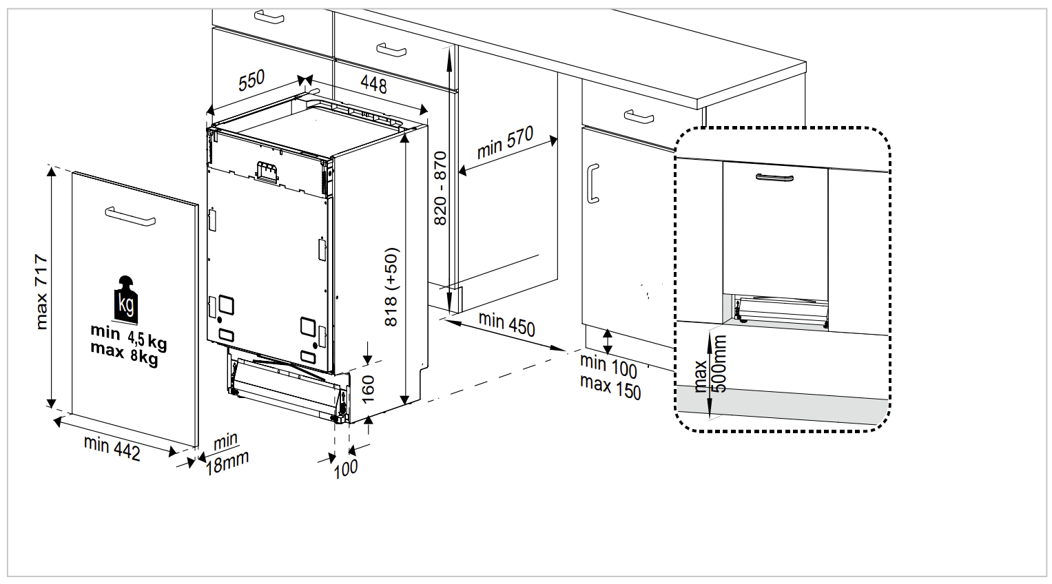 - Nischenmaße B x H x T ca. 450 x 820-870 x 570 mm