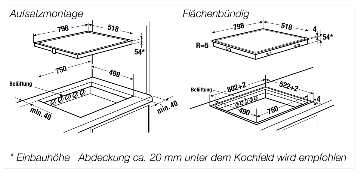 - Ausschnittmaße B x T ca. 750 x 490 mm