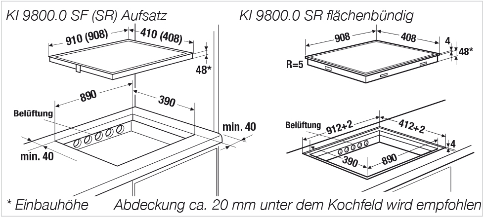 - Ausschnittmaße: B x T ca. 890 x 390 mm