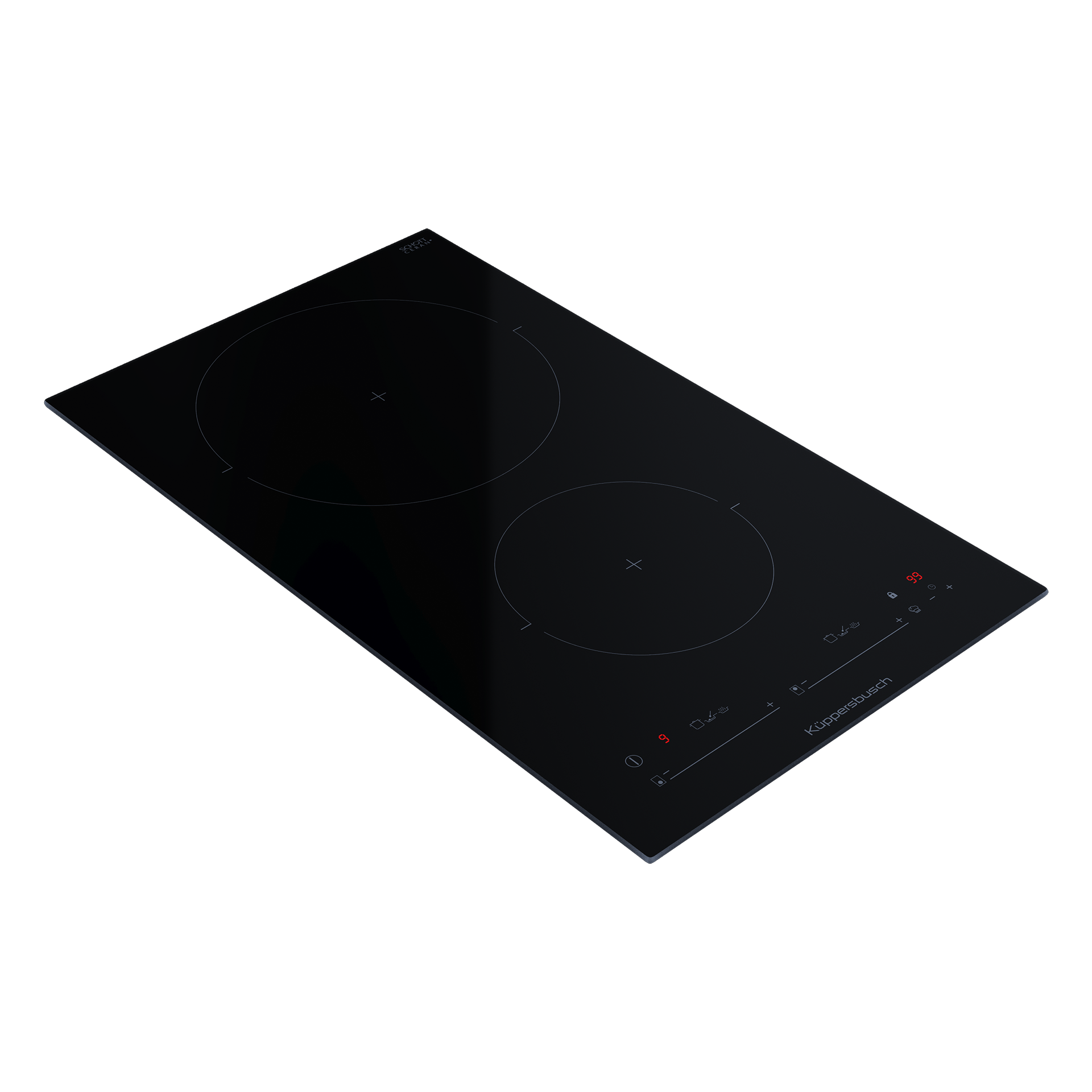 Küppersbusch VKI3550.0SR VarioLine. Kochfeld. Induktion. Schwarz. Rahmenlos. SelectCtrl, rote Anz., 10 Leistungsst., 2 Zonen, 30cm