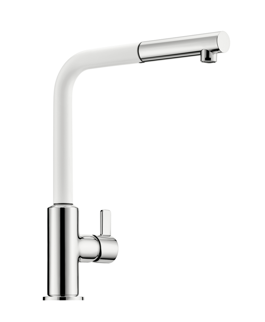 Die Serie L-INE wurde erweitert! Der Zusatz "XS" in der Serie kennzeichnet die schlankere Designsprache, welche sich harmonisch der puristischen Ästhetik moderner Küchen anpasst. Eine filigranere Form vom Sockel bis zum Auslauf gepaart mit neuen Auslauffarben (schwarz matt/chrom und weiß matt/chrom). Durch den kürzeren Hebel ist eine Montage vor Rückwänden möglich.