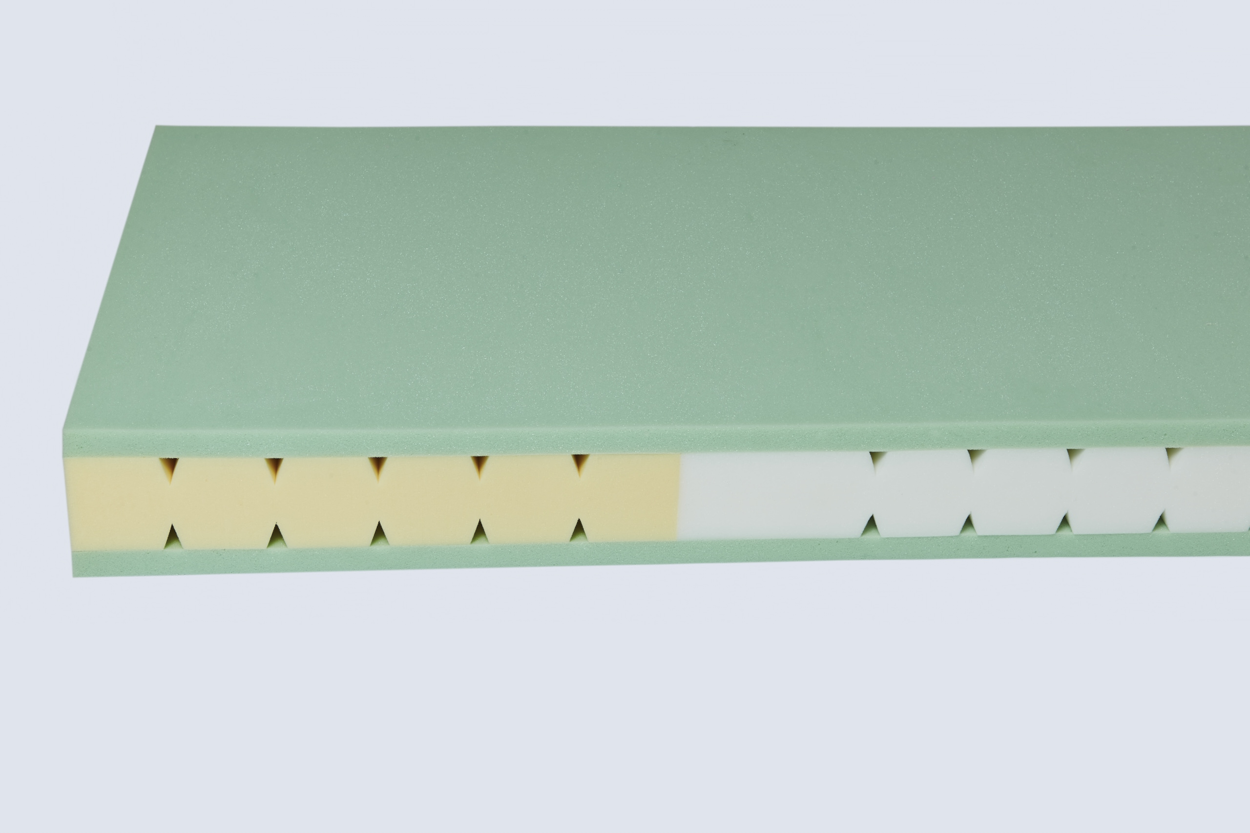 Beidseitige Abdeckung aus 3 cm Kaltschaum, medium oder fest.
