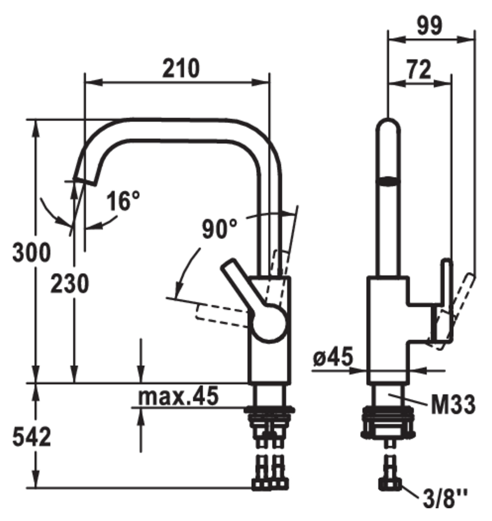 KWC Einhebelmischer. Mit schwenkbarem Auslauf, seitlichem Hebel und Keramikkartusche.