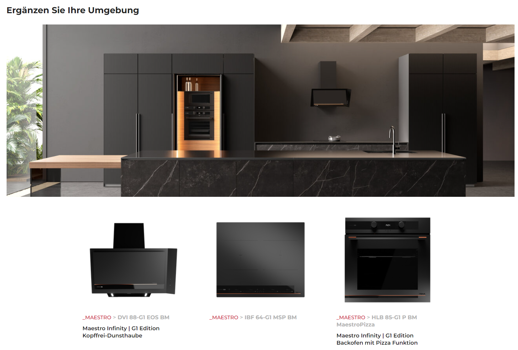 Die Geräteedition Infinity G1 wurde entwickelt, um die Küche in einen einzigartigen Raum zu verwandeln. Die Edition ist als Standardbackofen, Kompaktbackofen, Mikrowelle, Induktionskochfeld, Gaskochfeld und Dunstabzugshaube erhältlich. Entdecken Sie die ganze Serie.