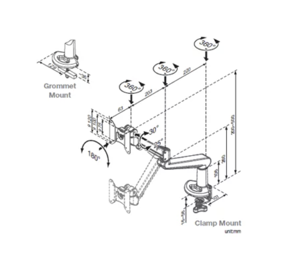 - MSA-1 Monitorschwenkarm aus hochwertigem Aluminium,