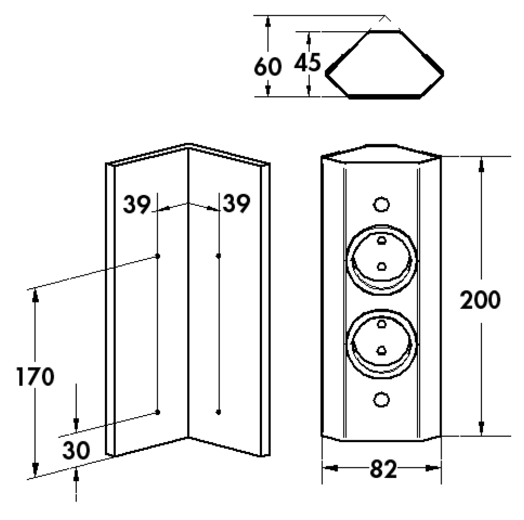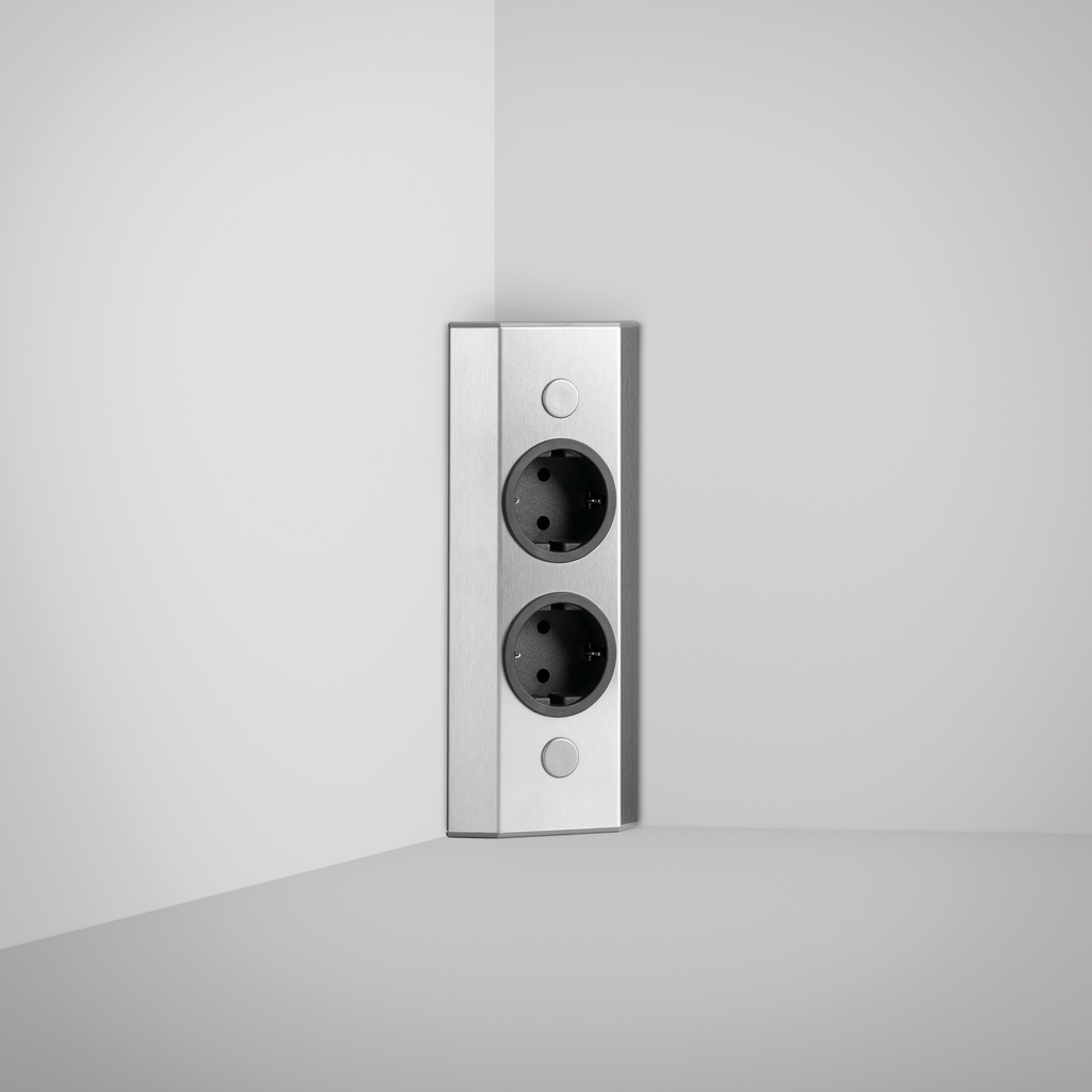 Eck-Steckdosenelement. 2-fach. Für senkrechte und waagerechte Montage geeignet