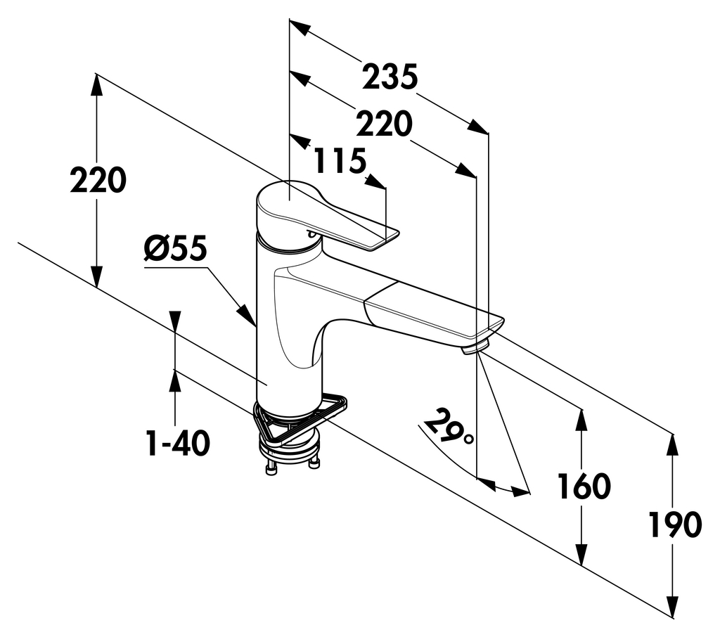 Einhebelmischer. Mit schwenk-/herausziehbarem Auslauf, geschlossenem Hebel und Keramikkartusche mit Heißwasserbegrenzung.