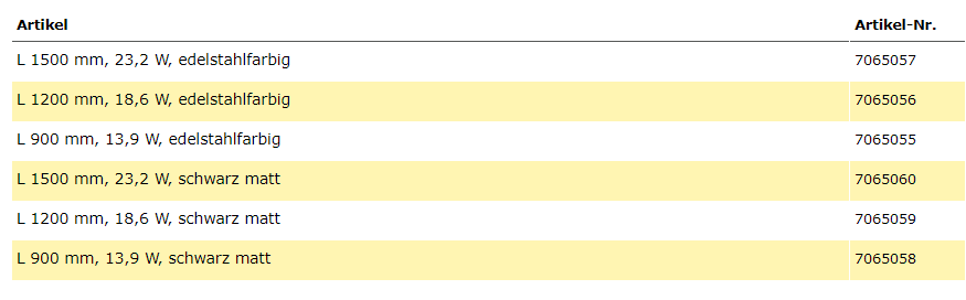 stufenlose Regelung der Lichtfarbe von 2700 K warmweiß bis 6500 K kaltweiß