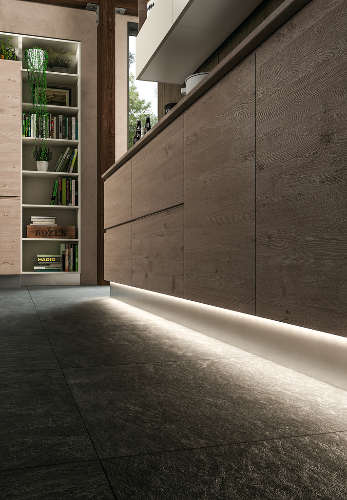 Flexibler LED Streifen. Ambienteleuchte. LED in Silikon vergossen. Einfache Montage direkt am Sockel mit 3 selbstklebenden Profilhalterungen à 900 mm.