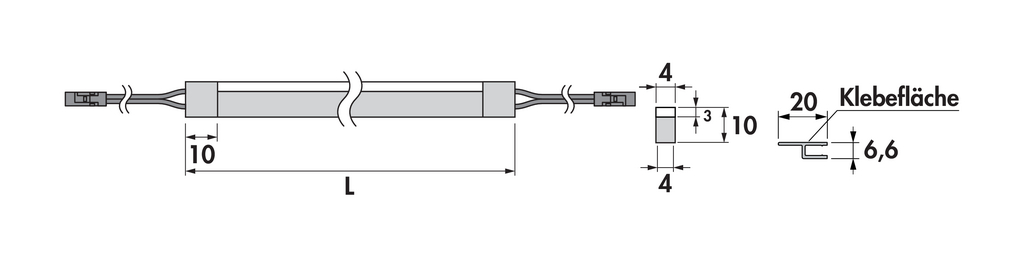 Streifen 4 x 10 mm breit, alle 25 mm kürzbar, ab Schnittpunkt keine Verbindung mehr möglich