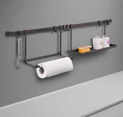 Das Relingsystem Cast zeichnet sich durch klare kantige Linien aus. Der industrielle Look mit seinen markanten Merkmalen lässt den Bereich zwischen Arbeitsplatte und Hängeschrank einen entsprechenden Charme versprühen.