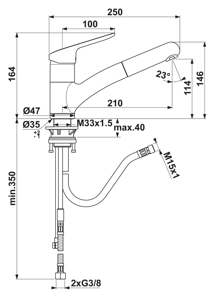- Einhebelmischer, mit schwenk-/herausziehbarem Auslauf und Keramikkartusche