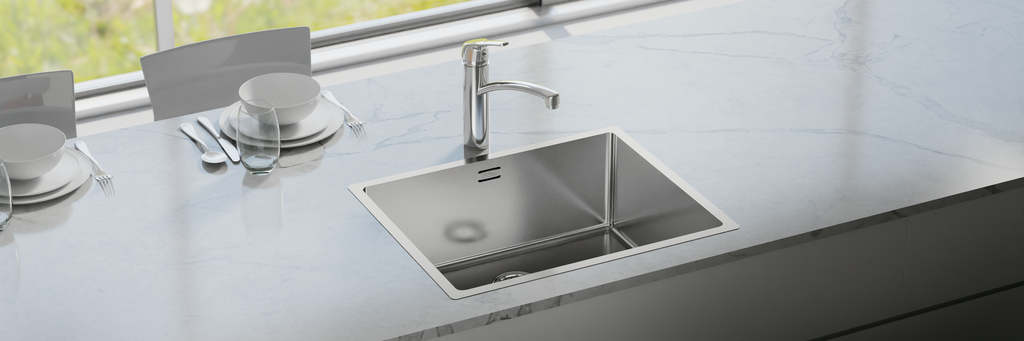 geeignet für Arbeitsplattenstärken von 1040 mm (Einbauspüle) bzw. 20 mm (Unterbauspüle)
