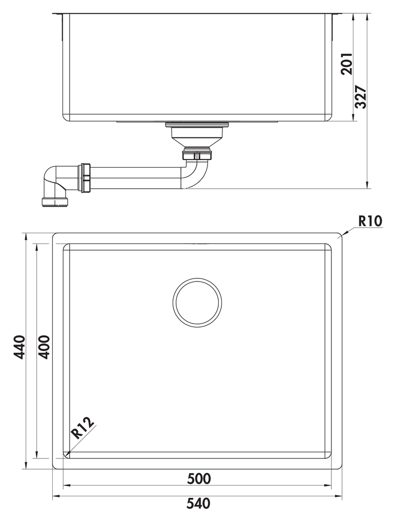 Ausschnittmaß ca. 501 x 401 mm (Unterbauspüle)