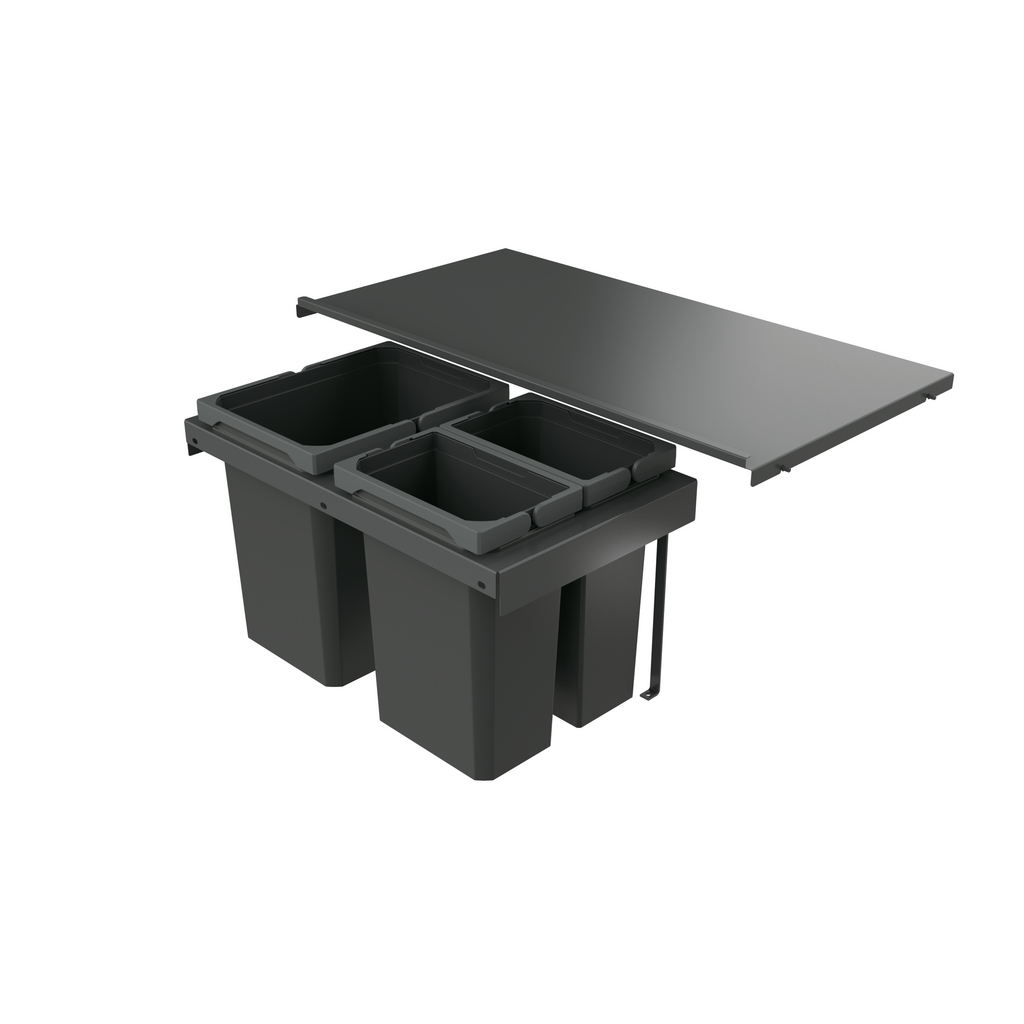 Zur Montage auf vorhandenen Auszügen mit einer gekürzten Nenntiefe von 400 mm. Das 600 mm breite Cox®-Stand-UP®-Abfallsystem wird für die Korpusbreiten 800 mm und 900 mm mit einem passenden feststehenden Gesamtdeckel geliefert. Somit entsteht neben dem Abfallsystem noch weiterer praktischer Stauraum in dem Auszug.