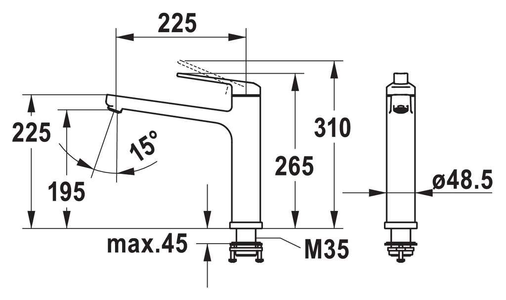 Einhebelmischer. Mit schwenkbarem Auslauf und Keramikkartusche.