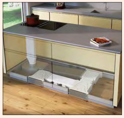 GREENflow ist im Sockelbereich flexibel anzuordnen und mit fast allen am Markt erhältlichen Downdrafthauben/Muldenlüfter kompatibel.