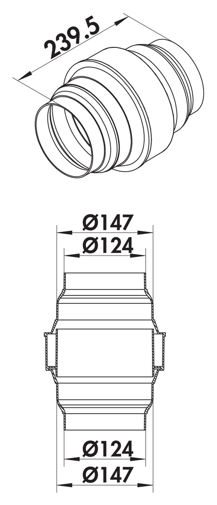 Verhindert das Zurücklaufen von Kondenswasser in die Dunstabzugshaube bei vertikaler Abluftführung. Strömungsoptimierte Ausführung durch Vermeidung von scharfkantigen Strömungsabrisskanten. Beidseitiger Anschluss von Schläuchen und Rohren auf Ø 125 mm und Ø 150 mm möglich. Bei Anschluss auf Ø 150 mm muss Ø-125-Teilstück an vorgesehener Schneidelinie abgetrennt werden.
