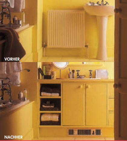 Sockeleinbau-Kompaktheizung. Für Räume bis ca. 24 m² lässt sich mühelos an das Zentralheizungssystem anschließen.
