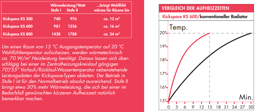 Genau aus diesen Überlegungen heraus entwickelt sich Kickspace: die Sockeleinbau-Kompaktheizung, übrigens nicht nur für die Küche, sondern für alle Räume. Kickspace zeigt sich planungsfreundlich in den Abmessungen und ist sicher und leistungsstark in der Funktion. Und man erkennt Kickspace wirklich nur an der edelstahlfarbigen Außenblende. Das ständig durch das Gerät fließende warme Wasser sorgt für schnelle, effiziente und wohltuende Wärme.
