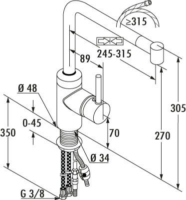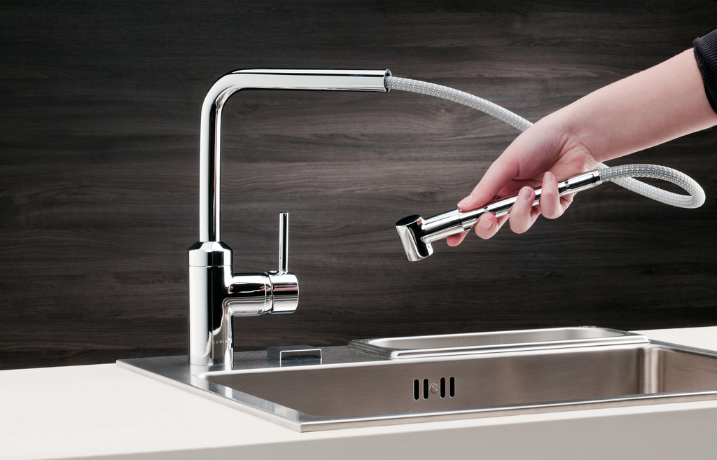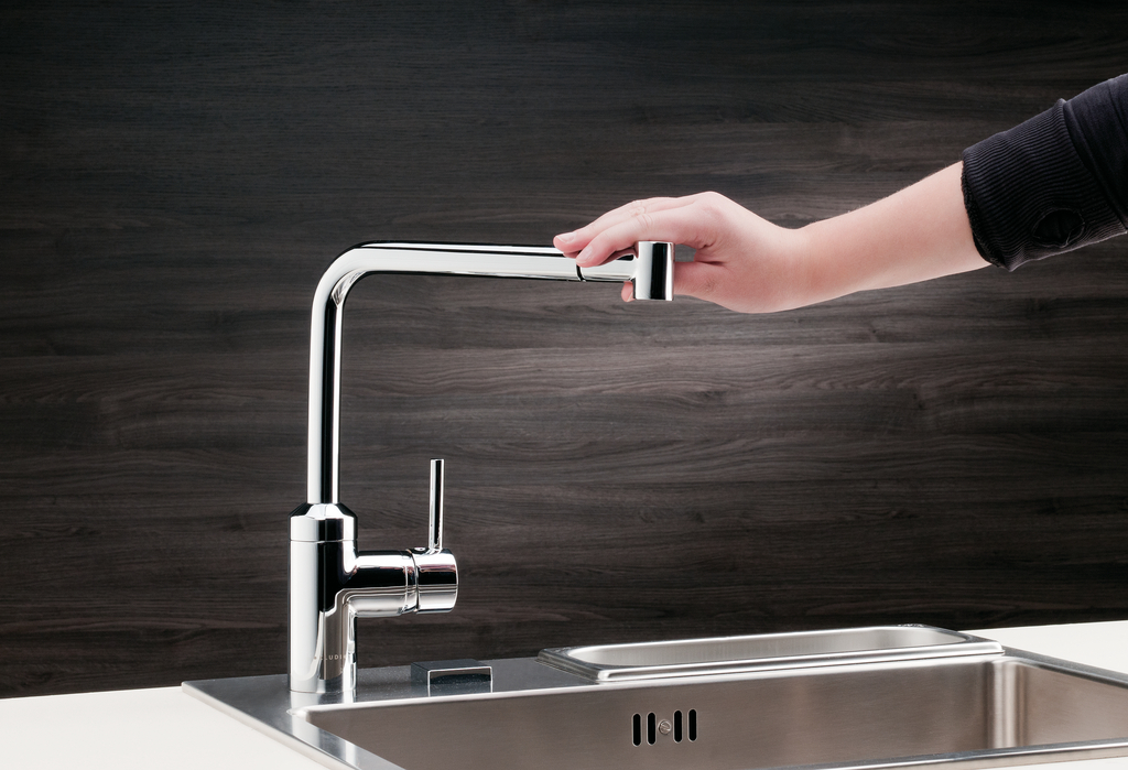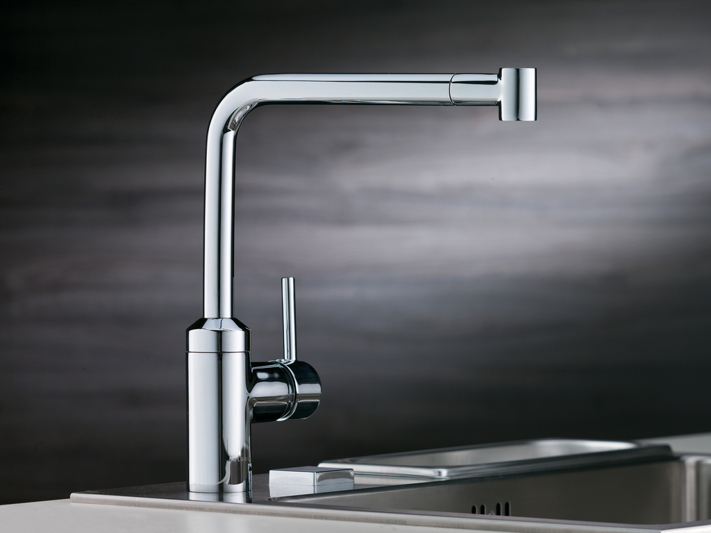 Freiheit par excellence! Minimalistisch im Design und clever in der Funktion erweitert die Serie L-INE ihre Produktvielfalt um einen weiteren funktionalen Einhandmischer. Mit einem Schwenkbereich von 220° hat der neue Einhandmischer viel Bewegungsfreiheit an der Spüle. Zusätzlich kann der Teleskopauslauf dieses Modells im Schaft ausgezogen werden. Das Mundstück kann bis zu einer Rasterung 70 mm herausgezogen werden, damit erweitert sich die Ausladung des Auslaufs auf bis zu 315 mm. Ideal für ein großzügiges und flexibles Arbeiten. Zieht man das Mundstück über die Rasterung hinweg, so erhalten Sie einen Auszugsauslauf mit einer maximalen Reichweite von 760 mm. Im ausgezogenen Zustand ist das Handstück thermisch entkoppelt und erwärmt sich nur langsam.