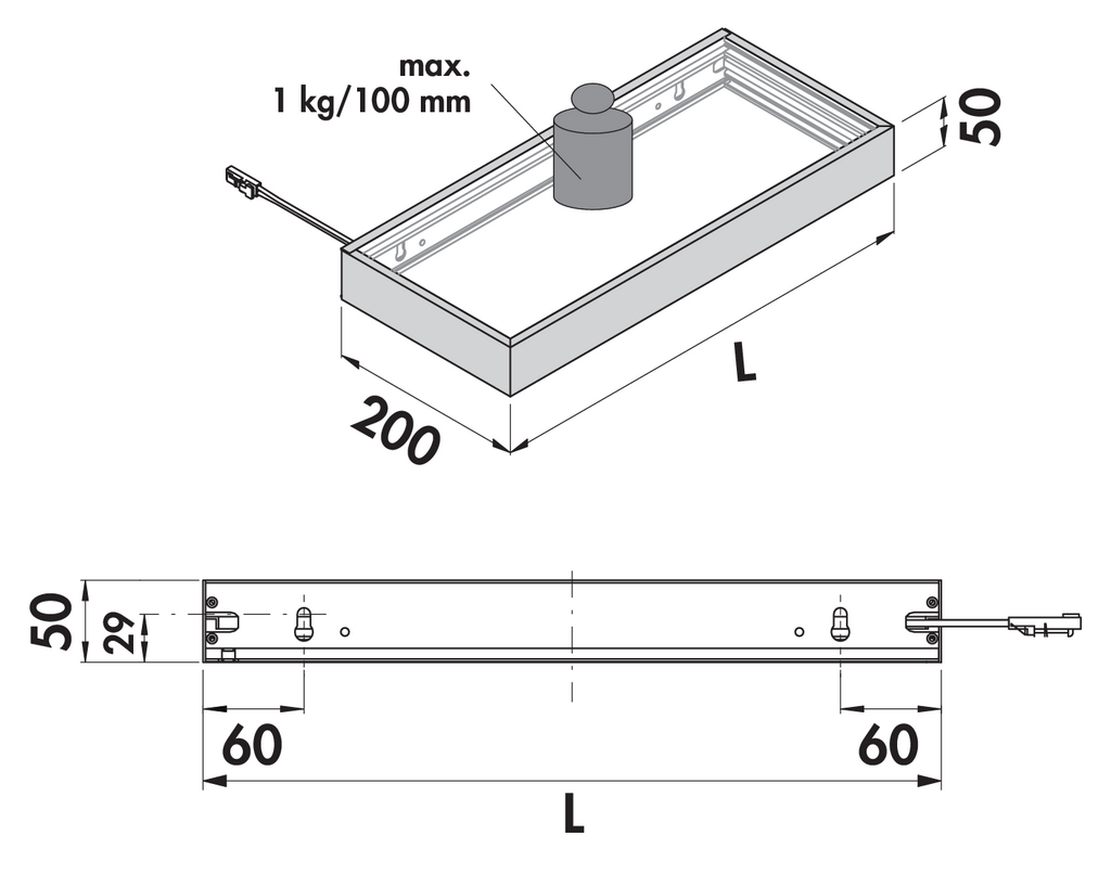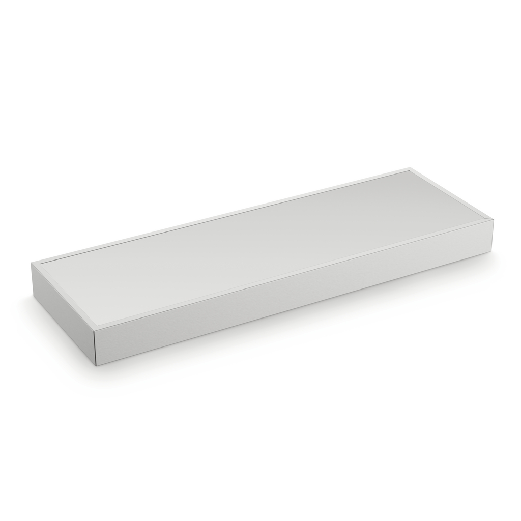 Lichtboden. Aluminiumgehäuse, Sicherheitsglas mattiert, mit LED Beleuchtung, gleichmäßige Ausleuchtung über die komplette Breite nach oben und unten, freihängende Anbringung bis zu einer Bodentiefe von 200 mm, Schrauben rückseitig, unsichtbar zu montieren.
