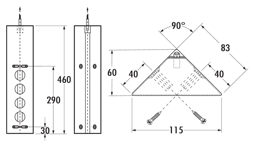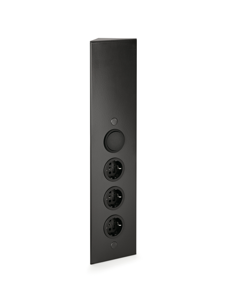 Eck-Steckdosenelement. 3-fach. Mit teleskopierbarem Ausgleichsstück ohne Endkappen, mit Schalter schwarz für externe Beleuchtung.