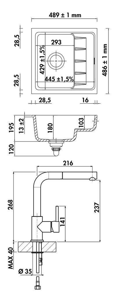 geeignet für Arbeitsplattenstärken ab 30 mm