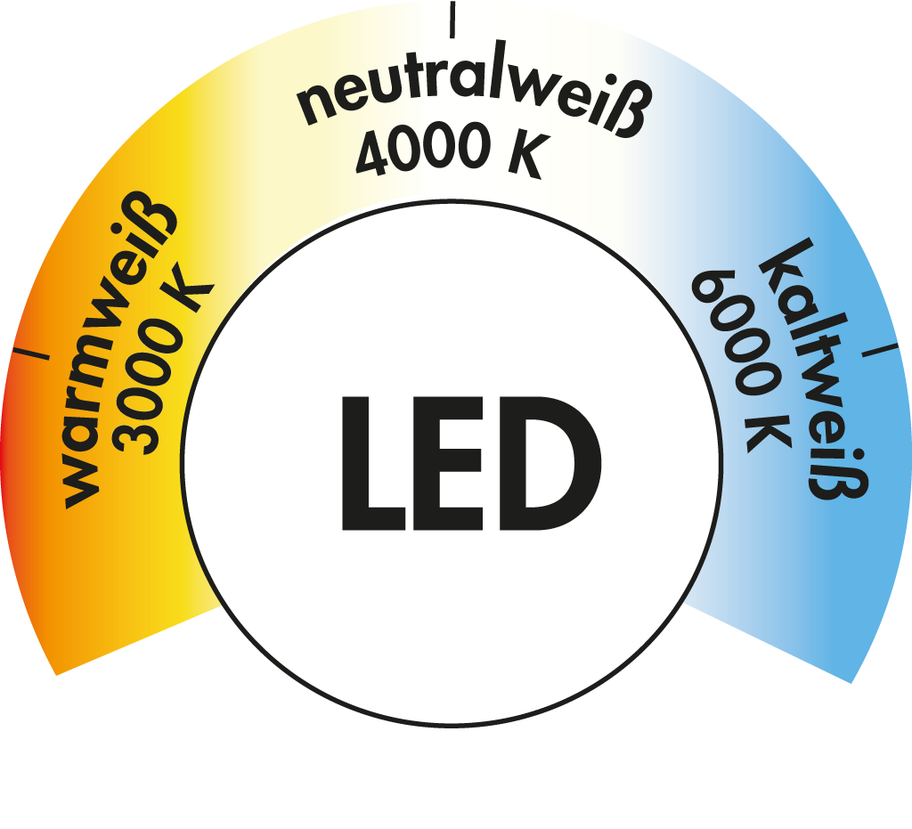 stufenlose Regelung der Lichtfarbe von 2700 K warmweiß bis 6500 K kaltweiß