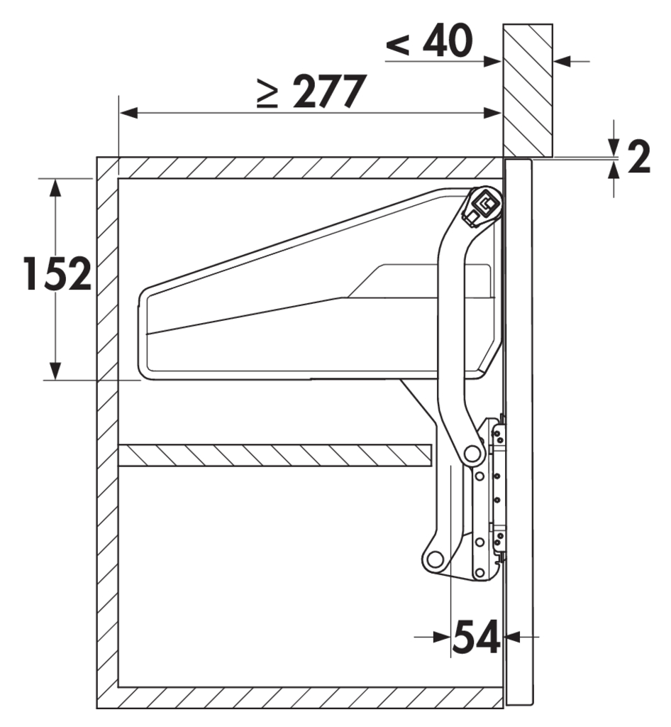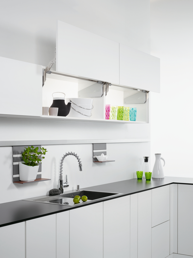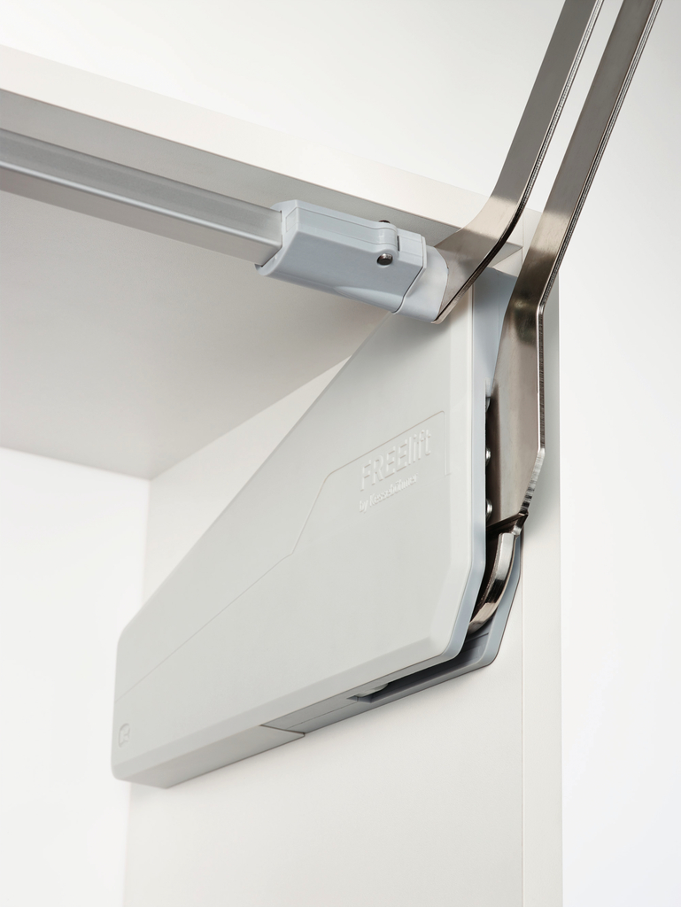 Parallelliftbeschlag zur scharnierlosen Anbindung von Frontklappen.