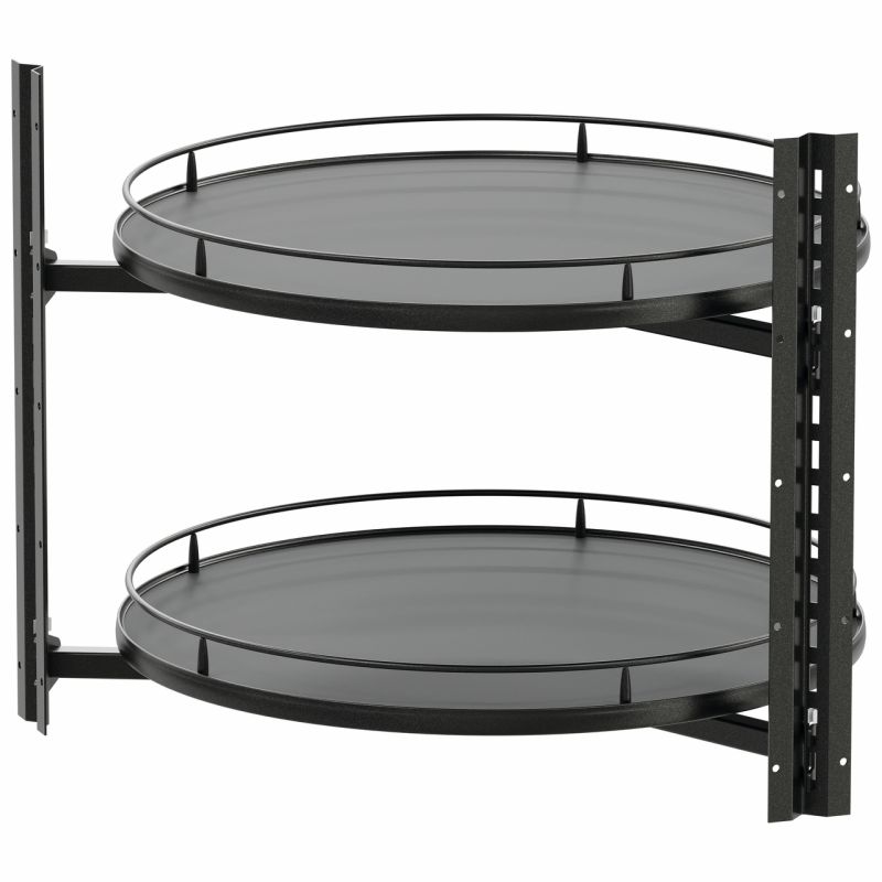 Der Eckschrank-Drehbeschlag VS COR Wheel Pro für diverse Tablarvarianten schafft optimale Voraussetzungen, um die in Kücheneckschränken vorhandenen Aufbewahrungsmöglichkeiten effizient zu nutzen. Bei der Konstruktion der Eckschrankausstattung wurde bewusst auf das sonst übliche Mittelrohr verzichtet, sodass bis zu 20 % mehr Stauraum in der Tablarmitte zur Verfügung steht. Optisch fügt sich die Schrankausstattung harmonisch ein, da die für die Nutzung benötigte Mechanik unsichtbar integriert wird. Die Ablageböden lassen sich werkzeuglos auf den Tragarmen platzieren und sind pro Ebene bis 27,5 kg belastbar. Es ist genügend Spielraum zum Aufbewahren des Kochgeschirrs aus Edelstahl und weiterer Küchenutensilien vorhanden. Die moderne Unterschrankausstattung steht in unterschiedlichen Varianten für ¾ und 4/4 Tablare zur Verfügung.
