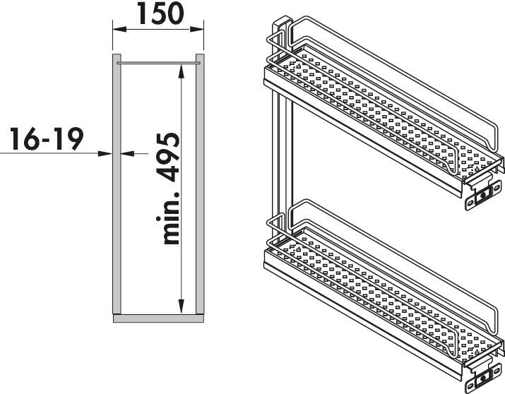 Der Etagenauszug VS SUB Slim ist eine intelligente Lösung, um selbst kleinste Nischen und Zwischenräume in modernen Küchenunterschränken sinnvoll zu nutzen. Er bietet sich als zusätzliche Ablage beispielsweise für Lebensmittelvorräte oder Putzmittel an. Für die Integration mit dem Anschlag auf der rechten Seite ist eine minimale Korpusbreite von lediglich 150 mm erforderlich. Zur Grundausstattung des durchdacht konzipierten Systems gehören zwei Ablageelemente, die bedarfsgerecht verwendbar sind. Dank der integrierten Dämpfung schließen die beiden Führungselemente im Zusammenspiel mit dem Selbsteinzug leise und materialschonend. Die Montage erfolgt an der rechten Innenseite des dafür vorgesehenen Unterschranks. Wahlweise steht der Auszug in den Varianten Chrom und Silber zur Verfügung.