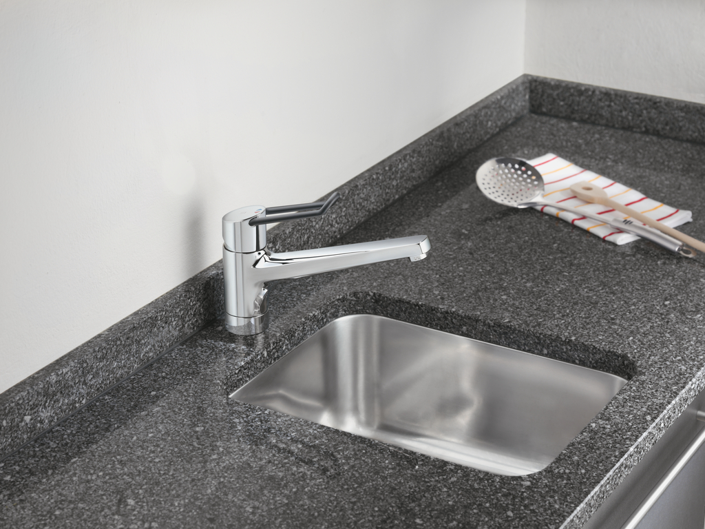 Einhebelmischer. Mit schwenkbarem Auslauf und Keramikkartusche.