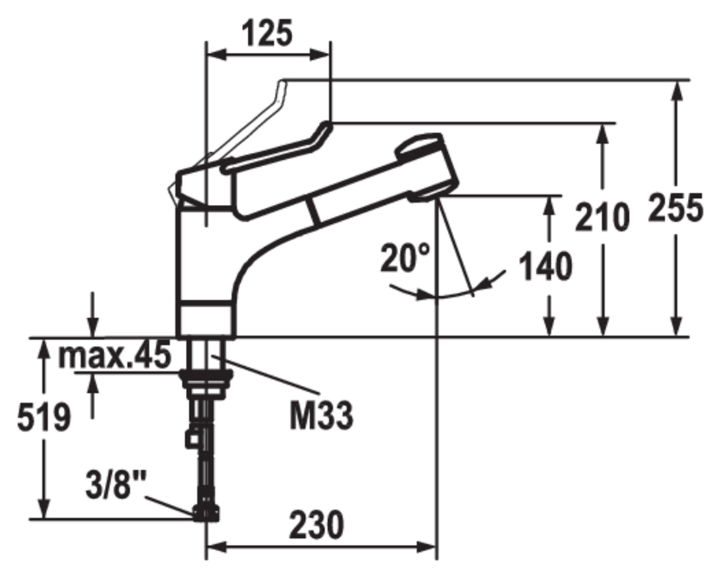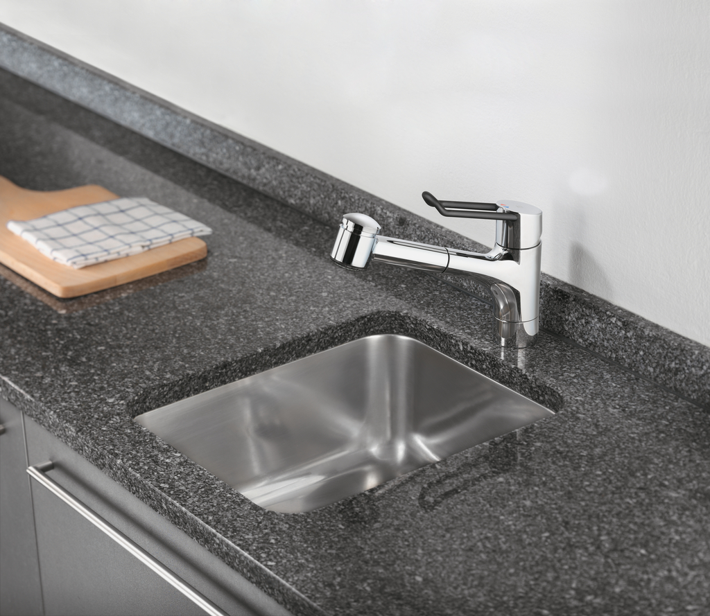 Einhebelmischer. Mit schwenk-/herausziehbarer Schlauchbrause (Strahl/Brause umstellbar) und Keramikkartusche.
