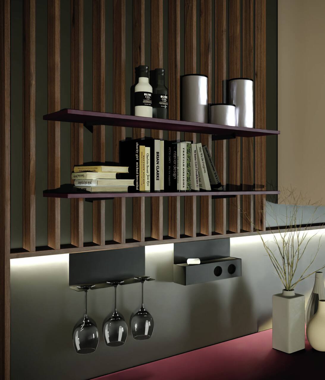 Die ACCOMODA® transFORM Powerbox für die Küchenreling ermöglicht den gleichzeitigen Anschluss zweier Elektrogeräte. Optisch überzeugt das Zubehör wie das gesamte Relingsystem durch sein geradliniges Design mit in mattschwarz gepulverten Oberflächen. Beide Steckdosen sind mit einem Schutzkontakt ausgestattet. Der Kabelanschluss ist unsichtbar auf der Boxrückseite integriert. Der obere Bereich bietet sich als zusätzliche Ablage für Kleinutensilien an.