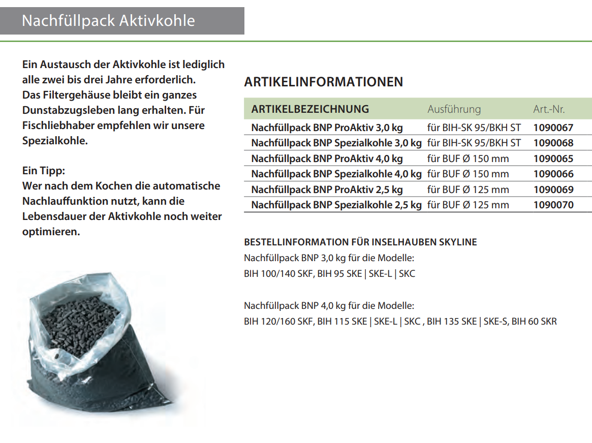 Das Nachfüllpack 3,0 kg ist geeignet zum Filterwechsel bei: