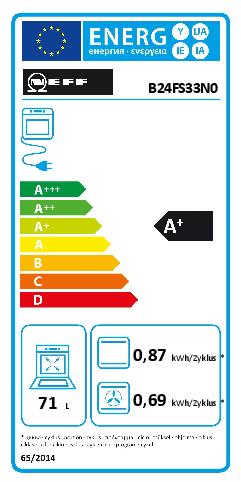 - Energieeffizienzklasse (gem. EU Nr. 65/2014): A+(auf einer Energieeffizienzklassen-Skala von A+++ bis D)