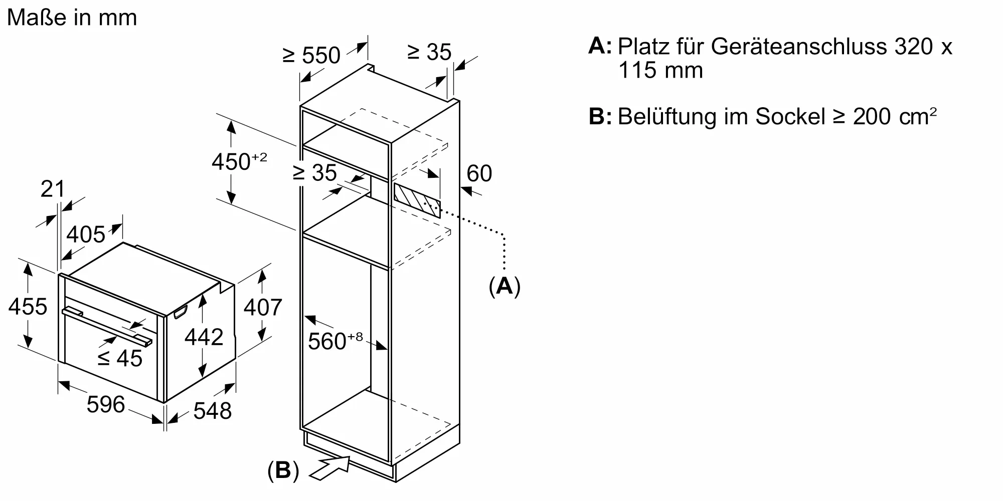 - Nischenmaße (HxBxT): 455 mm x 560 mm x 550 mm