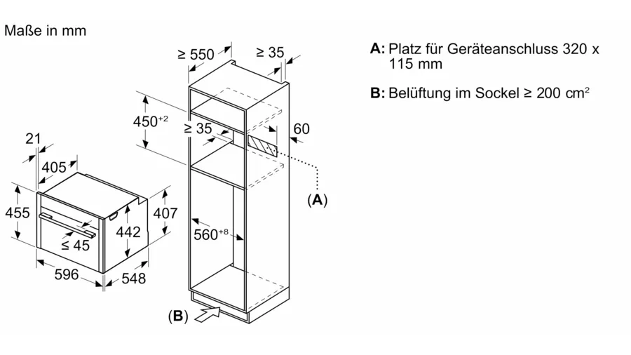- Nischenmaße (HxBxT): 455 mm x 560 mm x 550 mm
