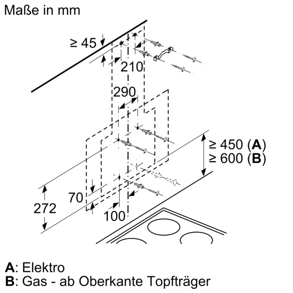 - Gerätemaße Abluft (HxBxT): 780-1066 x 600 x 434 mm