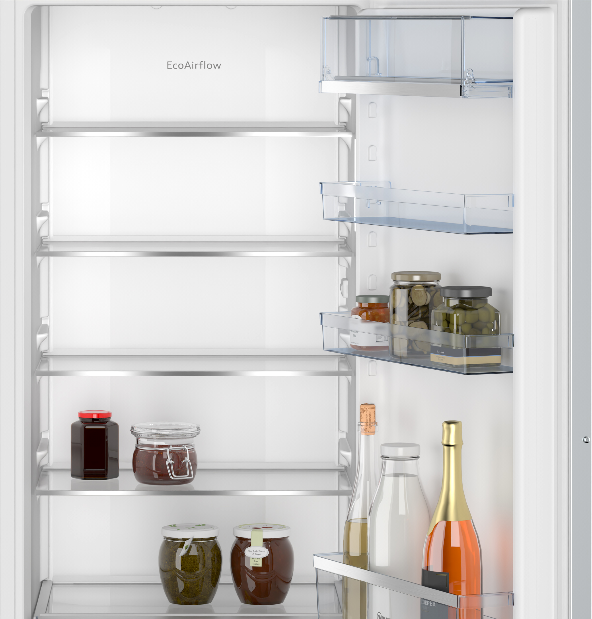 Dieser Einbaukühlschrank hält die Lebensmittel dank der idealen Luftzirkulation Eco Air Flow und den flexiblen Aufbewahrungsmöglichkeiten so frisch wie möglich.