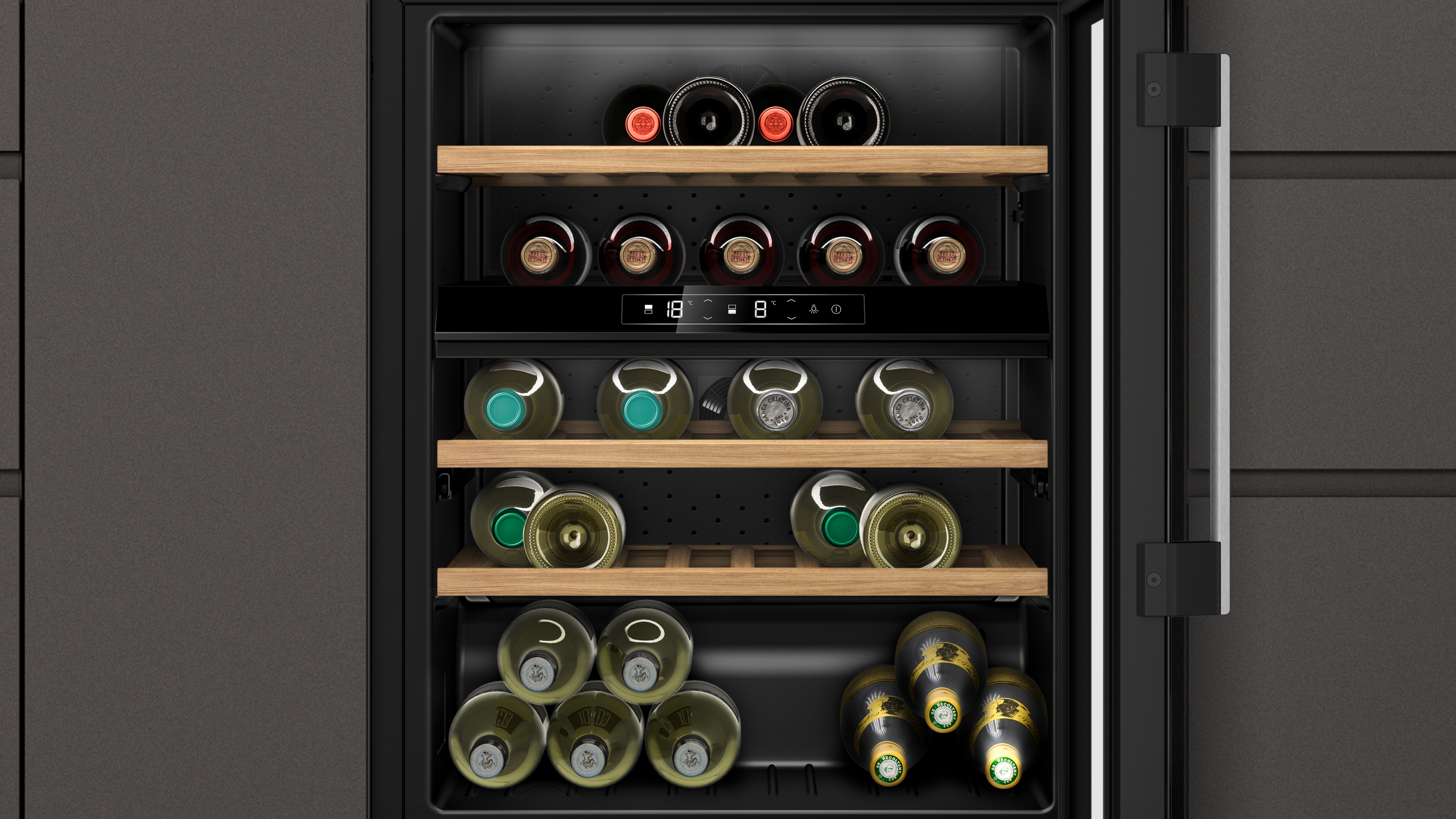 Lagern Sie bis zu 44 Flaschen - perfekt gekühlt und stets griffbereit.