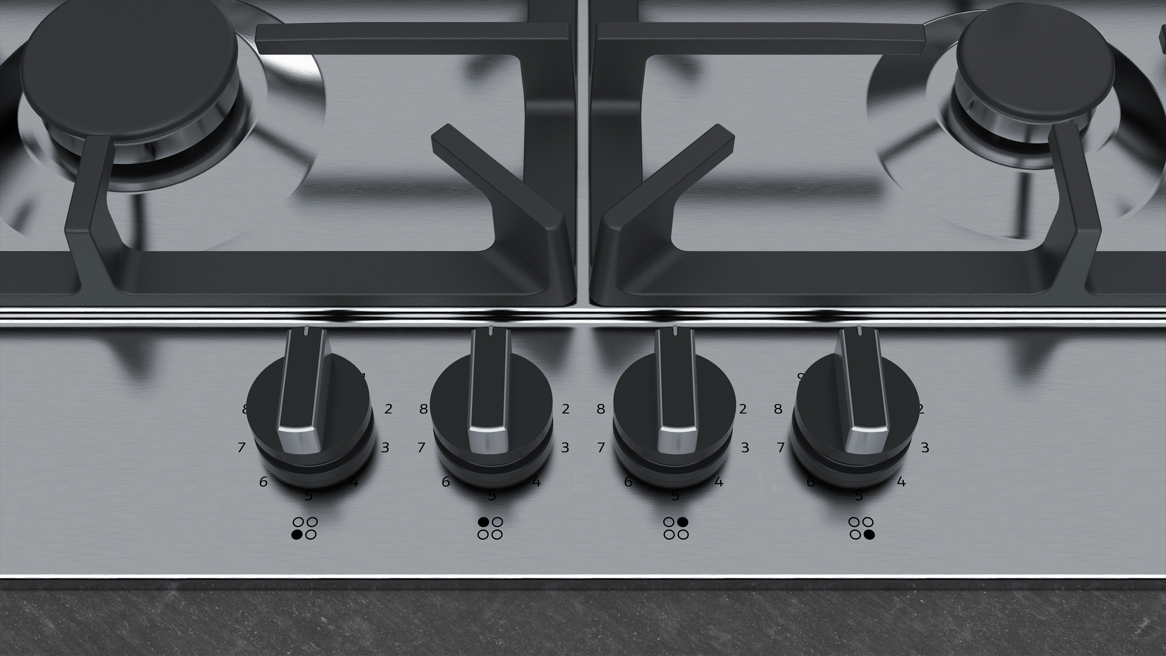 - 4 Gas-Kochstellen, stufenweise regulierbar